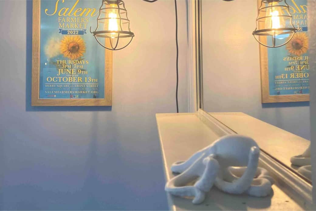 Newly updated bedroom for 2024. Additional vanity space or a small work space in corner.